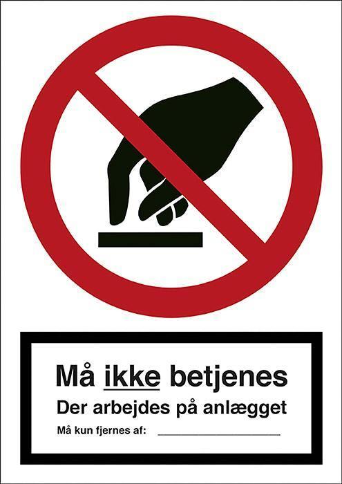 Forbudsskilt Må ikke betjenes der arb., m/snor