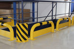 Det kraftige værn med underløbs beskytter giver beskyttelse mod skader fra påkørsler til både maskiner, lagergods og bygninger. Værnet er udstyret med en underløbsbeskytter der sikrer, at lave køretøjer som palleløftere og rullevogne ikke kan køre ind under afspærringen.