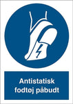 Påbudsskilt: Antistatisk fodtøj påbudt