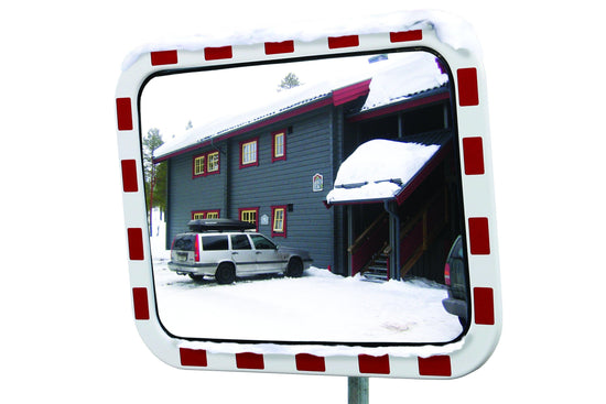 Trafikspejlet med varme garanterer et dug- og isfrit spejl med optimal optisk gengivelse, uanset vejret. Det giver den største sikkerhed ved kørsel i områder med dårlige orienteringsmuligheder.